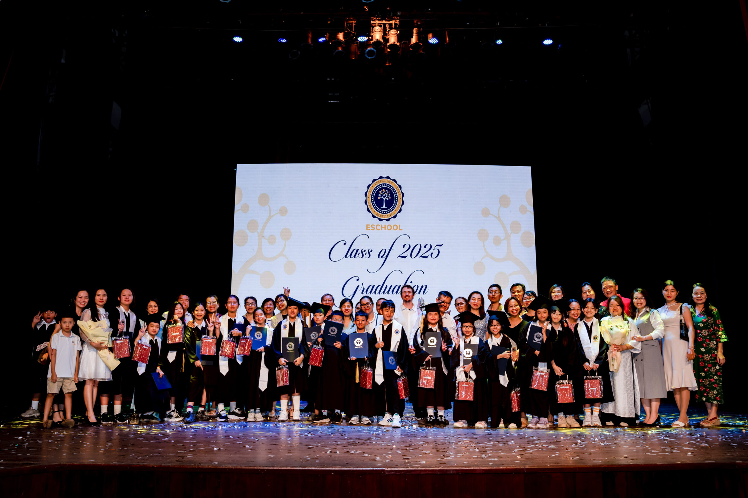 Kết thúc năm học 2024-2025, eSchool đã tổ chức Lễ Tốt Nghiệp trang trọng cho học sinh cấp tiểu học và THCS – đánh dấu một hành trình trưởng thành đầy ý nghĩa và tự hào của các em. Đây cũng là dịp để eSchool gửi lời tri ân sâu sắc nhất đến đội ngũ giáo viên, những “người lái đò” thầm lặng, đã tận tâm vun đắp, kiến tạo nên hành trình lớn khôn trọn vẹn và rạng rỡ của mỗi học sinh.